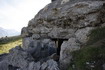 Oltrepassata l' opera 35, a circa cento metri si incontra l' opera 34, la forma è semplice, due blocchi collegari da una lunga galleria. Nel primo blocco era ubicato un obice, era presente un impianto fotofonico collegato al centro 35, da qui un lungo camminamento porta prima a varie riservette e poi al malloppo per mitragliatrice che batteva l' area verso l' abitato di Nevache, è presente un' uscita di fortuna ma è ostruita da macerie. Non vi sono pericoli nell' interno, esternamente è pieno di bossoli di mitragliatrice e altri oggetti metallici. |