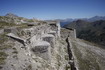 Dal colletto dei Gondran, si prosegue su strada militare, più o meno in piano, per poi risalire i tornanti per la piramide rocciosa dello Janus. Si incontra per primo il blocco di ingresso della Maginot, proseguendo arriviamo ad una grande caserma (blockhaus del 1886), in buono stato il pian terreno, il resto sventrato dal bombardamento del 1940 ad opera della Batteria Chaberton. Una grossa cancellata delimita una parte dell' opera, il resto è difeso da un' alta cinta muraria. Unico armamento della costruzione ottocentesca, erano quattro cannoni da 95 da marina orientati sui gondran (unica installazione di questo tipo sulle alpi). Raggiungendo la cima Janus quota 2565 m si può raggiungere il pennone della bandiera. |