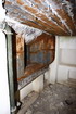 Arrivati al colle dello Chaberton, da Fenils, un sentiero sulla destra porta al ricovero n°1 ruderato e poi proseguendo a mezza costa su un tracciato all' ingresso quasi del tutto ostruito dell' opera 111. L' ingresso è solo stato riempito, si riesce ad entrare. L' interno è molto umido e pieno di fango però sono ancora presenti tutte le tubature di areazione nonchè il generatore. Anche nei malloppi è presente il corredo elettrico e quello dell' aria. L' impianto fotofonico era collegato con l' opera 112 posta di fronte e ha ancora la sua mensolina. |
