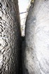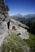 Proprio al di sotto della Punta Colomion, c' è un ricovero ancora parzialmente integro, con parte del tetto. Fu realizzato a fine '800 ma poi riadattato nel 1935. Internamente ci sono ancora decorazioni, scritte e le parti metalliche delle finestre. Il ricovero è ancorato alla montagna con dei grossi tiranti in ferro conficcati nella roccia. Sul colletto sopra al ricovero c' erano gli appostamenti di artiglieria ottocenteschi. Oggi però non se ne trova più traccia. |