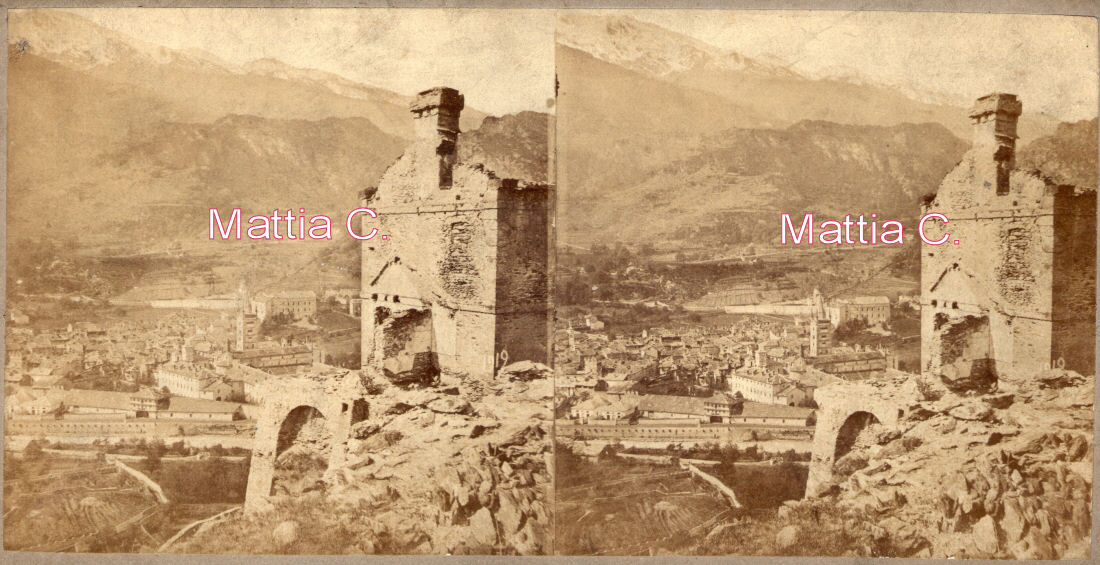 Foto stereo con in primo piano parte del Forte della Brunetta di Susa (N°1919 del 1870)