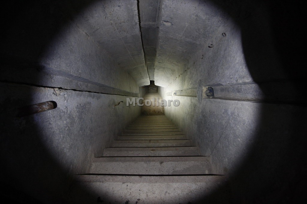 la ripidissima scala che scende verso l' ingresso basso e la postazione per anticarro
